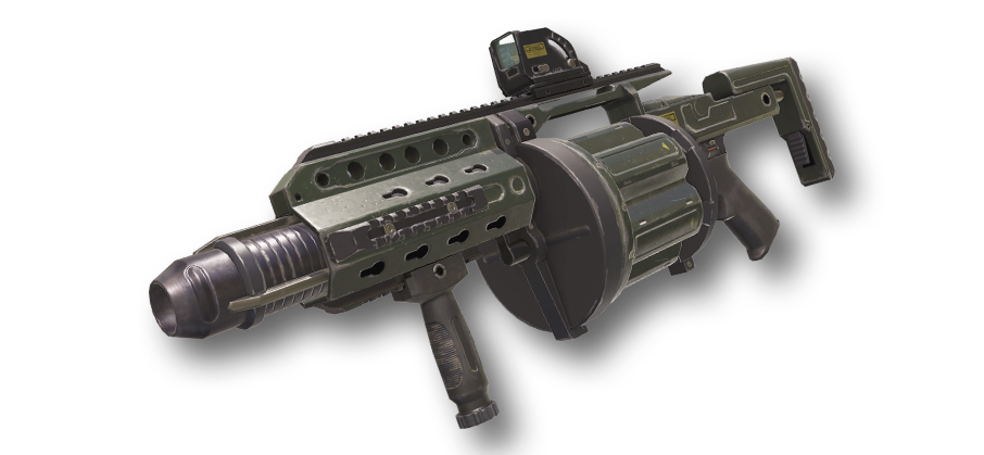 파괴적인 수류탄이 적재된 전자동 수류탄 발사기입니다.